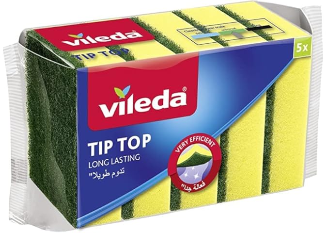 Vileda Tip Top Dish Washing Medium Foam Sponge Scourer 5 Pieces -