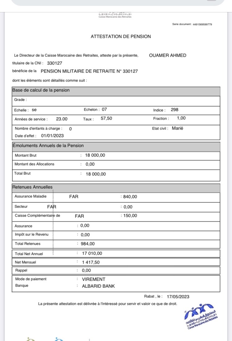 Derrière l’éclat de cette épopée historique et l’excellence des soins de 1965, se cache aujourd’hui la réalité amère de ceux qui ont servi sous les drapeaux. En tant qu’ancien soldat des Forces Armées Royales, diplômé de Ben Smim et fort de 23 années de service, le prestige du passé contraste violemment avec la précarité du présent. Malgré un engagement sans faille, je me retrouve aujourd’hui confronté à une inaptitude physique et à une pension de retraite dérisoire de 1417 dhs par mois.